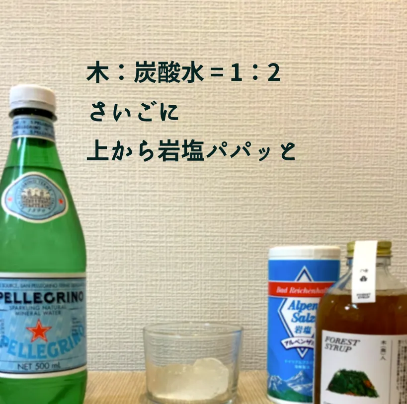 炭酸水で割ってよし、ジンと合わせてよし。炭酸水とグレープフルーツジュースなどと合わせれば、森が溶け合うような深い味わいが生まれます。