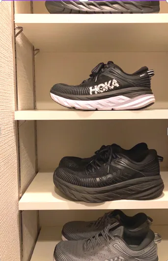 HOKAのスニーカーが快適すぎて、他のスニーカーが履けなくなります。悪くいうと足がクッションに慣れすぎてしまい硬い地面を踏む原始的な生活から遠ざかるため、足本来の機能が失われるデメリットはあるかもしれません。ですが、我が家は既に6足目以上を履いてきました。それくらい手放せなくなります。
